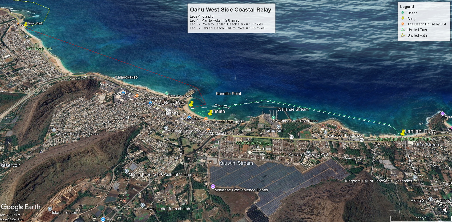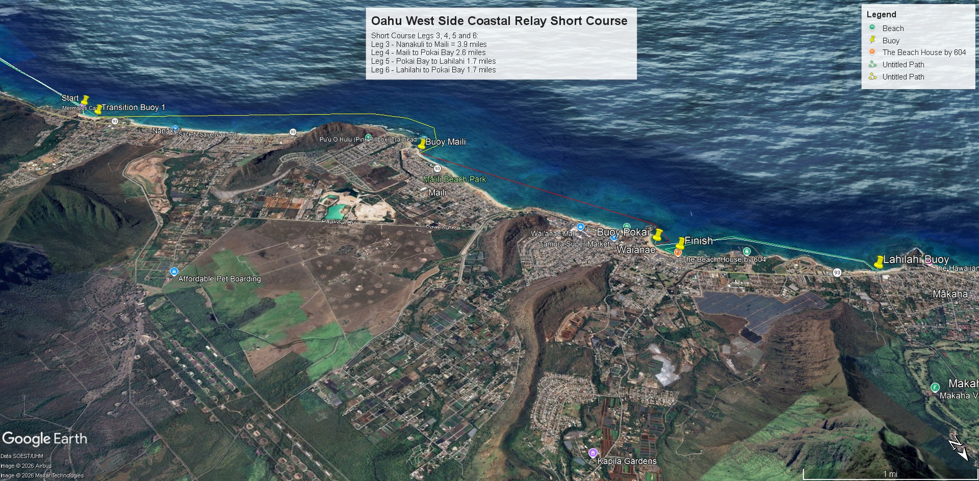Leg 4 will start at Lahilahi Beach Park and return to Pokai Bay: 1.7 miles