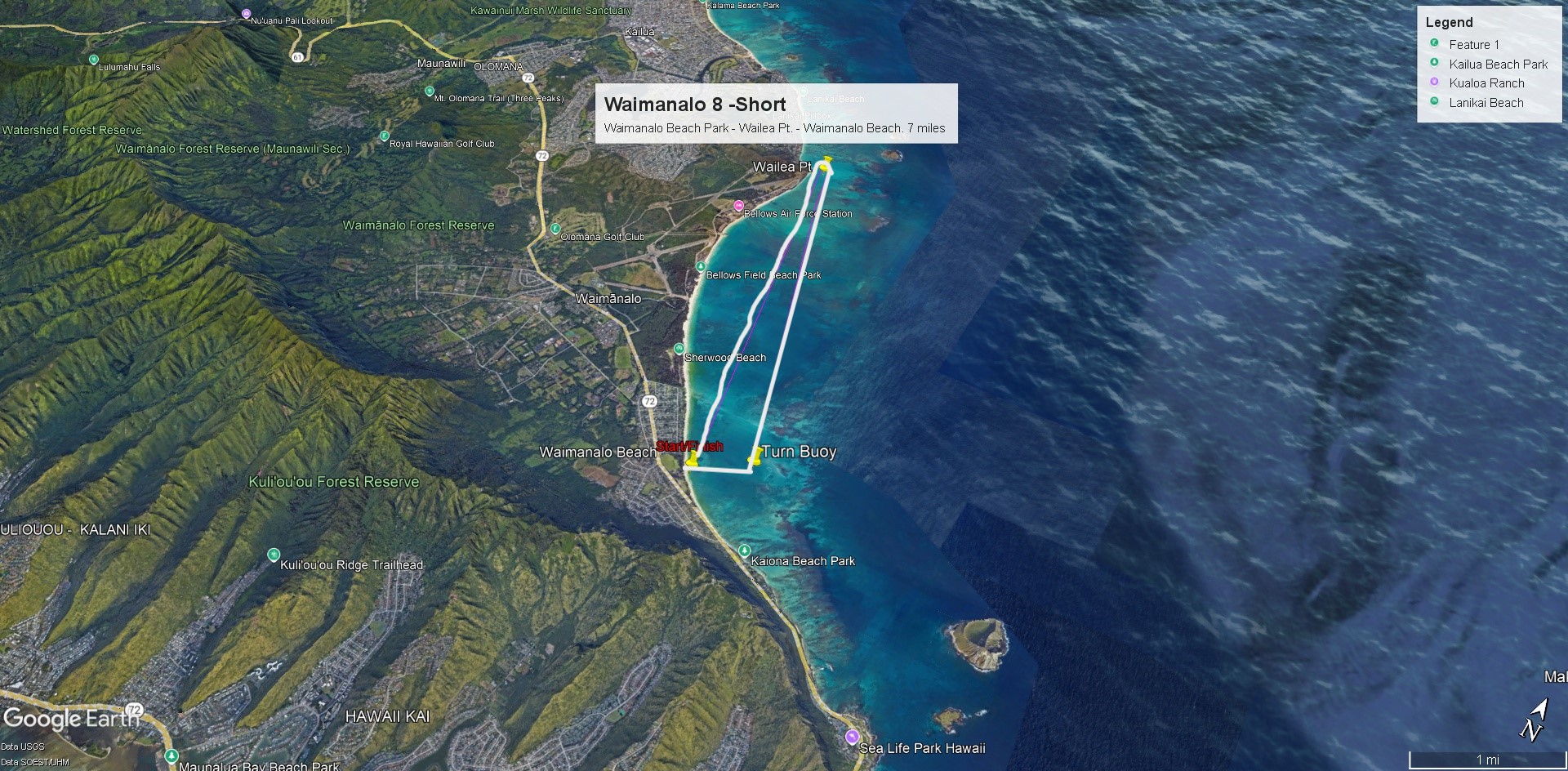 Short Course: 7 miles – Waimanalo Beach Park start and finish